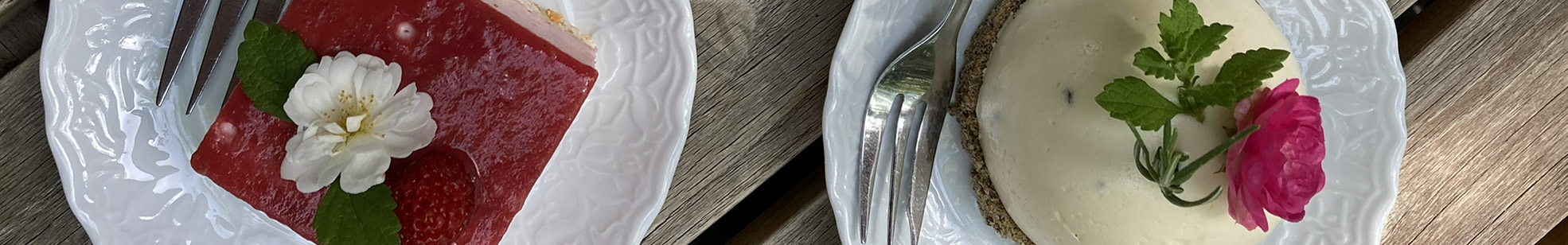 Im Café finden Sie auch eine Auswahl an veganem Gebäck und Genussvolles ohne Mehl. Möchten Sie sicher gehen, dass diese Spezialitäten vorrätig sind, kontaktieren Sie die Rosenschule vor Ihrem Besuch.