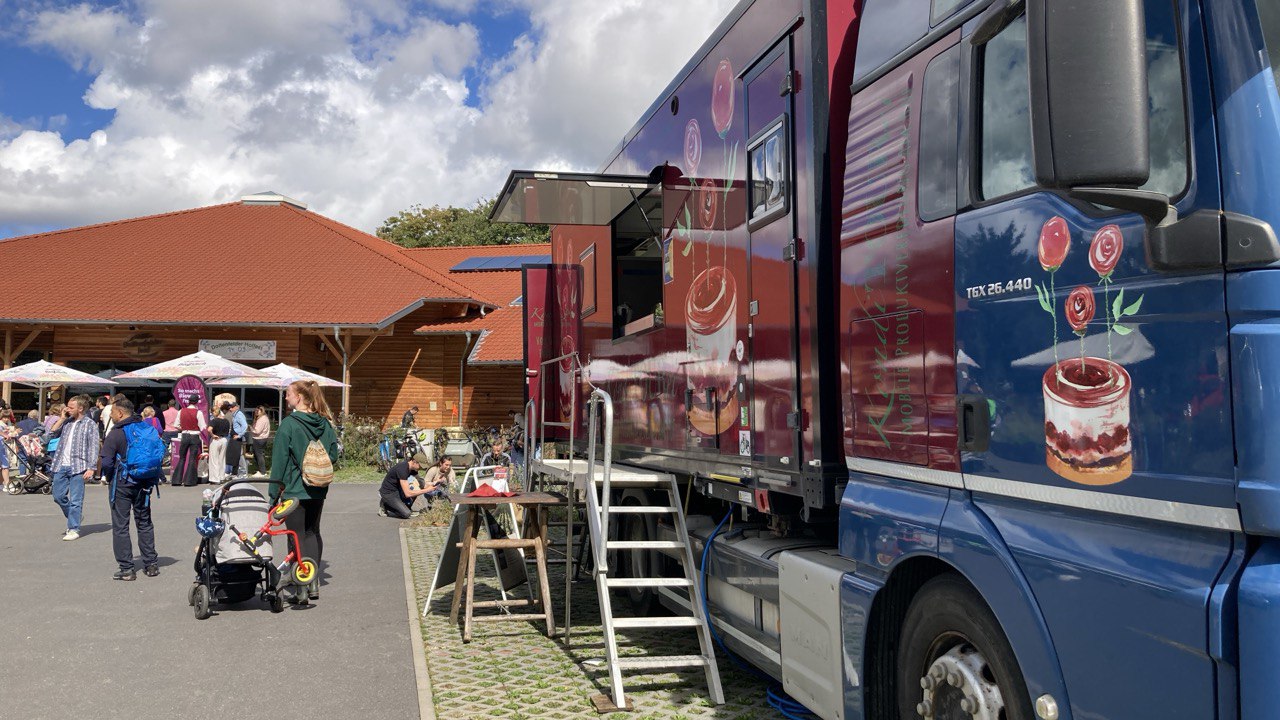 Der KondiTOURei Truck wird vor Ort sein und ofenfrische Cookies direkt aus der Backstube anbieten. Der Truck befindet sich vor dem Hofladen, denn einiges aus der KondiTOURei gibt es auch im Hofladen Sortiment.